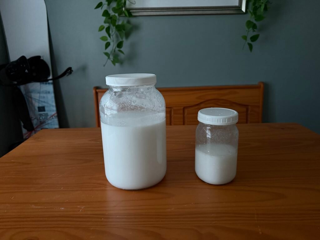 It’s really as simple as adding the ingredients with hot water and making sure everything is dissolved and mixed together. I find it beneficial to run the jar under hot water in the sink before adding any boiling or very hot water so the jar doesn’t get shocked and break. Once mixed, you can use the solution immediately, or let it wait for a bit to slightly thicken up. You are going to want to use about a quarter cup for an average load, and slightly more if washing a larger load. One of the great things about this recipe is also the fact that baking soda naturally reduces static, so you may or may not need to use dryer sheets. I find it convenient to transfer to smaller 32 ounce jars and refill when necessary. There are also mason jar lids that have a spout, which can make dispensing much easier.